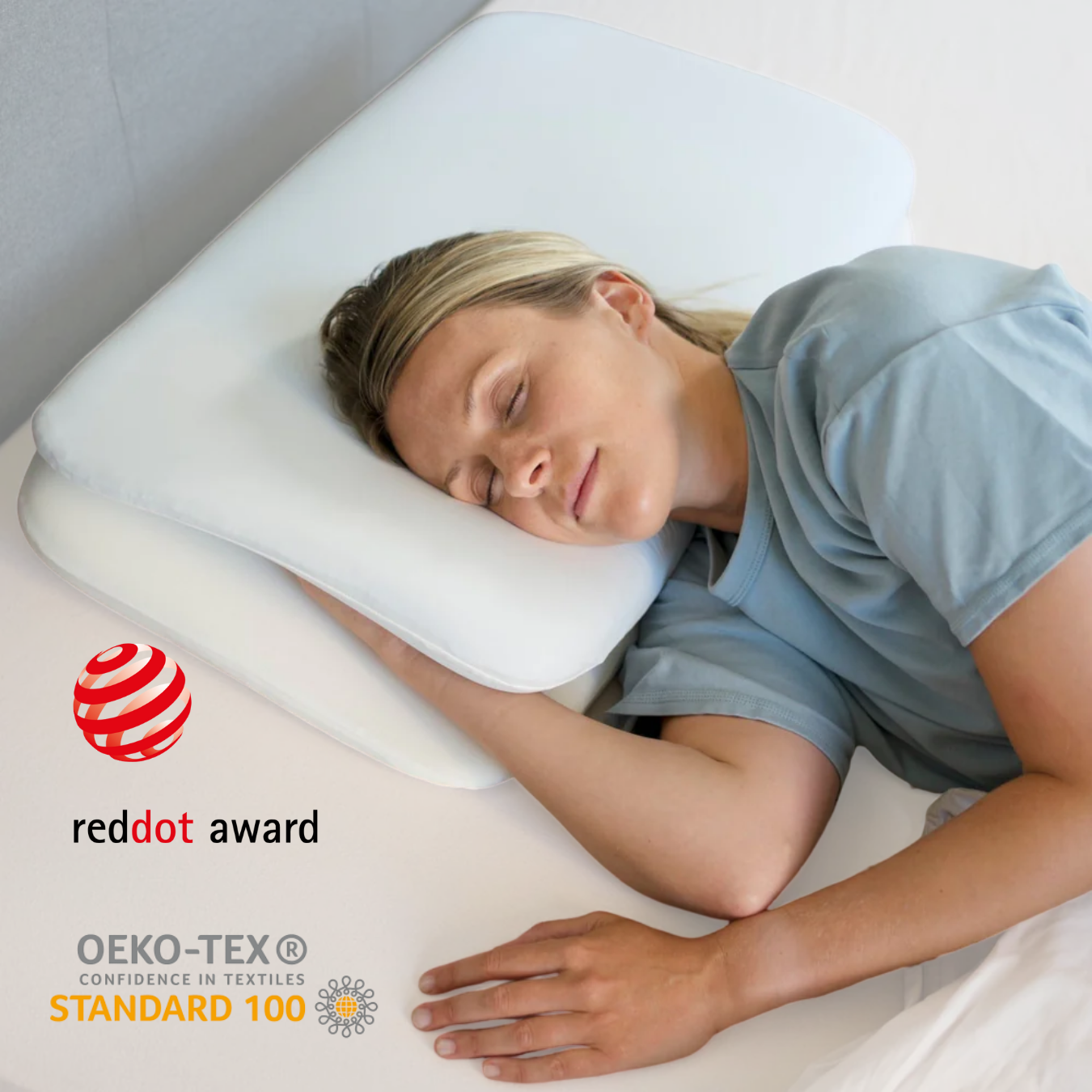 Die Auszeichnung durch den Red Dot Award bestätigt die funktionale Brillanz unseres Designs, das weit über eine reine Seitenlage hinausgeht. Die einzigartige Kontur bietet drei definierte Liegezonen: