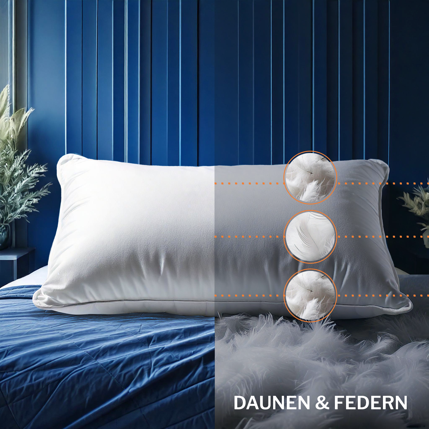 Schlafe wie auf Wolken. Unsere Daunenkissen übertreffen die Ansprüche der besten Hotels der Welt.